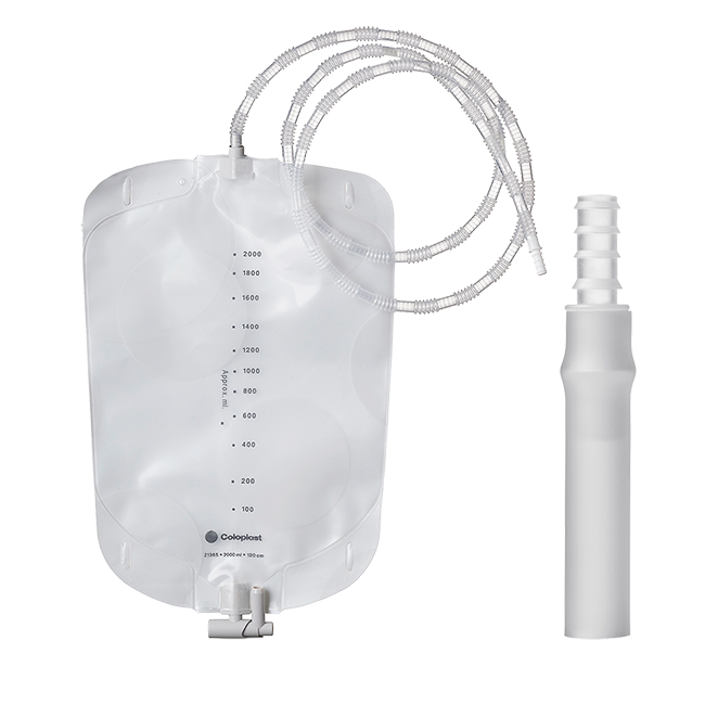 Pripojenie urostomického vrecka k nočnému vrecku. Konektor Coloplast vám umožňuje pripojiť urostomické vrecko Coloplast ku všetkým typom nočných drenážnych vreciek.